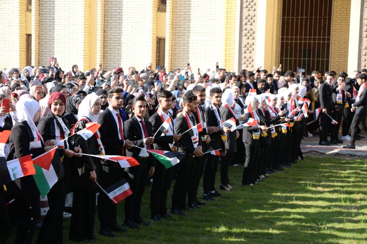 جرت فعاليات احتفال اليوبيل الماسي لكليتنا بمناسبة مرور مائة عام على تأسيسها وكان ذلك في يوم الأحد الموافق ١٨ / ٢ / ٢٠٢٤ وسط حضور رفيع المستوى تتقدمه الرعاية الكريمة لرئيس مجلس الوزراء محمد شياع السوداني المحترم، وإشراف معالي وزير التعليم العالي والبحث العلمي الدكتور نعيم العبودي المحترم، وحضور رئيس جامعة بغداد الأستاذ الدكتور بهاء إبراهيم إنصاف وتنفيذ عميد كليتنا الأستاذ الدكتور علاوي سادر جازع المحترم، إذ استُهل الحفل بطلب الإذن من الأستاذ الدكتور أحمد عبد حسين الفرطوسي معاون العميد للشؤون الإدارية والمالية ورئيس اللجنة التحضيرية للحفل المئوي، بعد ذلك بدأت فعاليات الحفل بعرافة الأستاذ الدكتور محمد الواضح، وبعد تلاوة القرآن وعزف النشيد الوطني، وقف الجميع لقراءة سورة الفاتحة ترحمًا على شهداء العراق، وابتدأت الفقرة الترحيبية للسيد عميد الكلية التي ذكر فيها أهمية هذا اليوم وشواخص هذه الكلية وأعلامها ورحب بضيوفه الكرام، ومن ثم جاءت كلمة ممثل السيد رئيس مجلس الوزراء الدكتور عارف الساعدي مستشار رئيس الوزراء للشؤون الثقافية، ذكر فيها أن أهمية الاحتفاء بهذه المئوية تعني الاحتفاء بتاريخ الدولة العراقية، وهنأ الجميع بهذا اليوم المبارك، بعد ذلك ارتقى المنصة معالي الوزير مهنئًا ومشيدًا بأهمية هذه الكلية وهذا الحدث التأريخي، ووجه معالي إلى ضرورة السعي الجاد في زيادة النشر العالمي في المستوعبات العالمية؛ لما لذلك من أهمية كبرى في تقدم الجامعات العراقية في التصنيفات العالمية المعتمدة، ليأتي دور السيد رئيس الجامعة؛ ليشيد بالجهود والخطوات التي قادت إلى هذا النجاح المبارك، والثناء على جهود التنظيم وحُسن الإخراج بهذا المنظر المهيب، وقد حضر الحفل معالي وزير الإعمار والإسكان الأستاذ بنگين ريكاني المحترم وجمعٌ غفير من رؤساء الجامعات والوكلاء والمدراء العامين والعمداء.